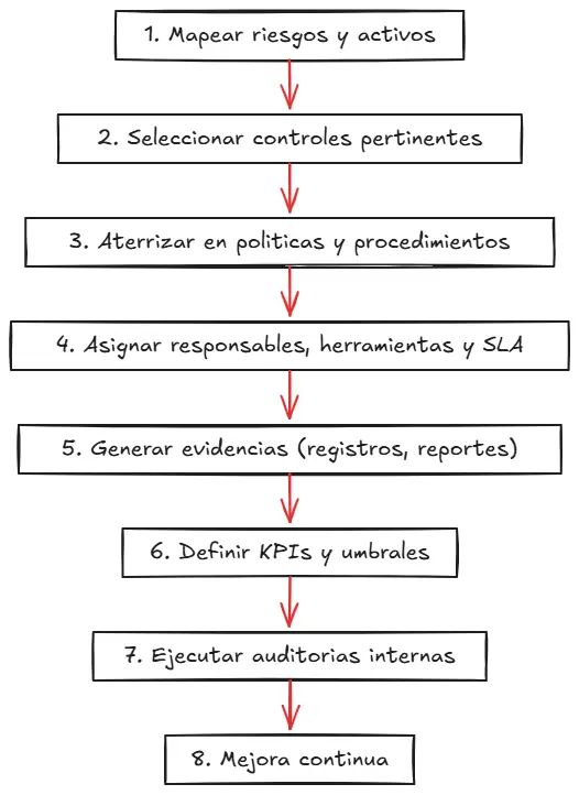 - Copiar/pegar controles sin contexto → Adaptar según riesgos y capacidades.